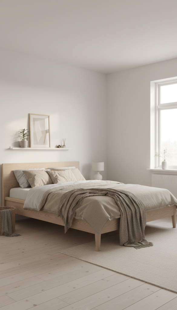 A truly modern Scandinavian bedroom balances minimalism with warmth, creating a space that feels uncluttered yet deeply inviting.