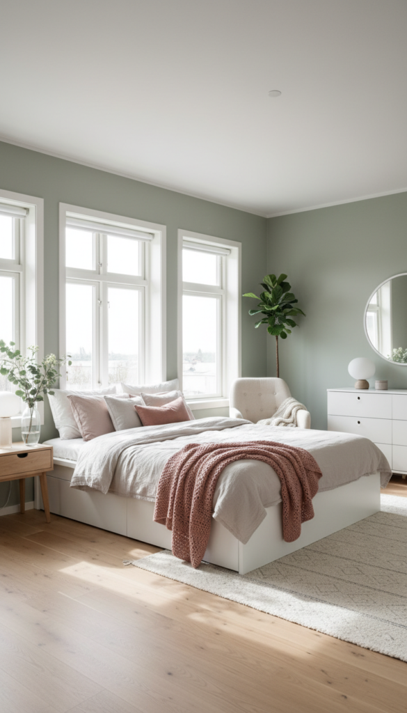 Scandi style isn’t strictly black and white; muted pastels like sage green or dusty pink soften the edges. These hues reflect light beautifully and evoke a sense of spring morning freshness.