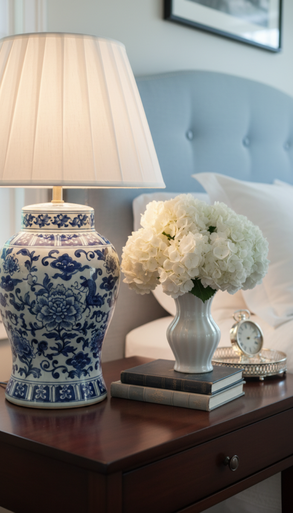 Harsh overhead lighting is the enemy of luxury. An old money bedroom relies on lamps and sconces to create a warm, flattering glow. The fixtures themselves should be made of classic materials like brass, ceramic, or crystal.