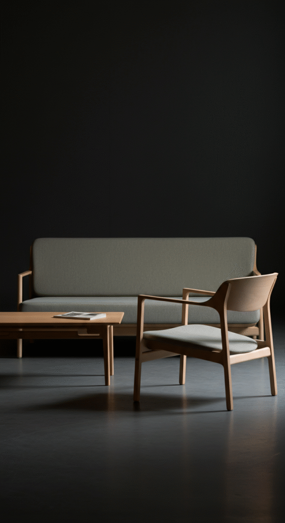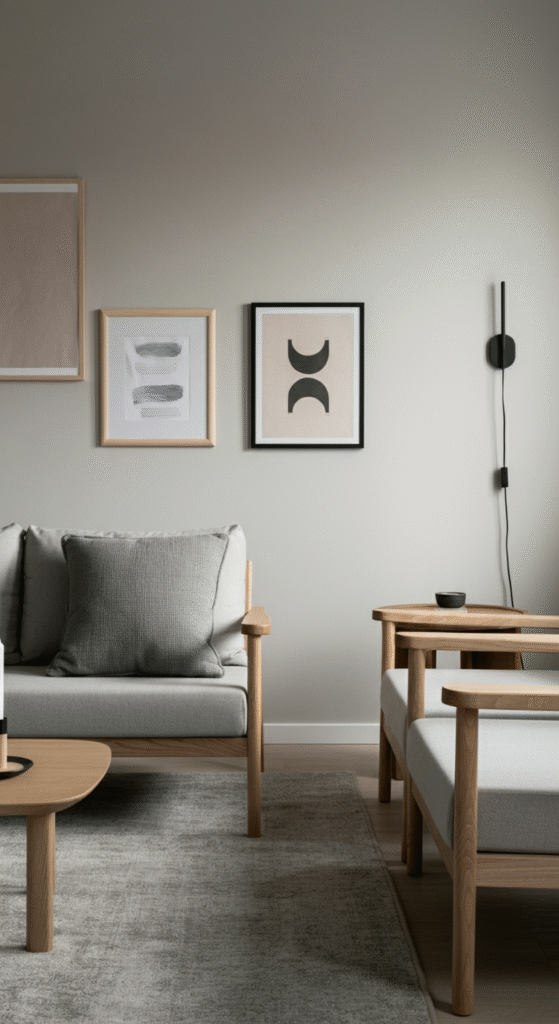 Furniture Suggestions: Think of low-profile sofas in muted tones, wooden coffee tables with simple lines, and open shelving that doesn’t clutter the space. A well-placed armchair with a throw blanket can also add a touch of warmth without disrupting the room’s simplicity.