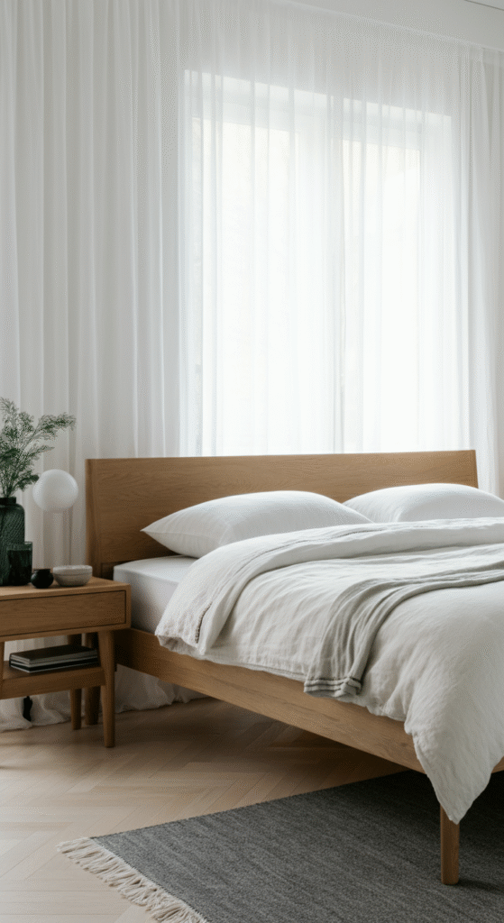 Scandinavian design puts comfort first. So the mattress, bedding quality, and even pillow height matter way more than expensive decor.