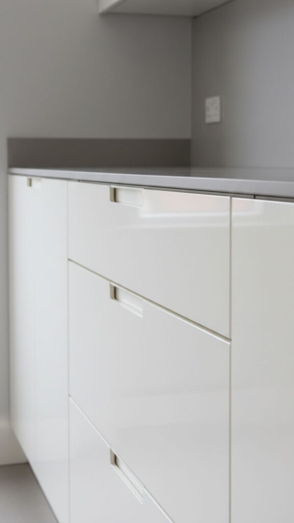 Why add hardware when you can remove it? Cut-out handles are integrated directly into the drawer or door front. This “negative space” approach is functionally ergonomic and aesthetically pure, eliminating protrusions entirely.
