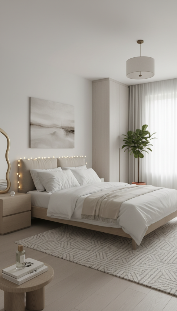 This style comes from modern minimal living, soft luxury, and a mindset of clarity. Less clutter. More intention. A bedroom that feels like a deep breath after a long day.