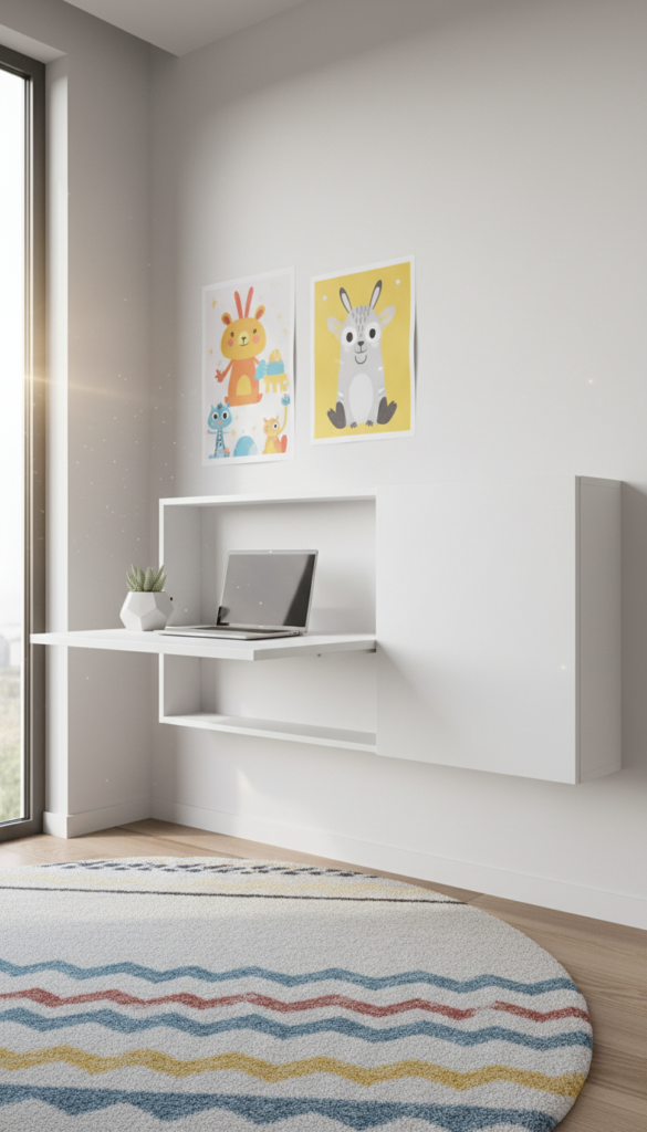 A bulky desk can dominate a small room. A wall-mounted floating desk that folds flat against the wall when not in use is a game-changer for preserving flow. These desks often come with built-in cork boards or shelves, offering a perfect spot for homework that disappears once playtime begins.