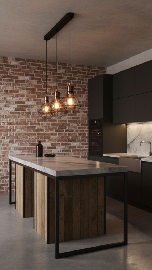 Industrial style brings a raw, unfinished look that adds character to modern kitchens. Usually featuring metal finishes, exposed bulbs, and cage designs, these lights work exceptionally well over kitchen islands.