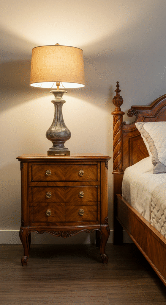This style sits well with both bold and soft color schemes. Even if your bedroom is simple, nightstands with character elevate it without overpowering anything. Traditional homes always valued furniture that looked good and worked well at the same time.