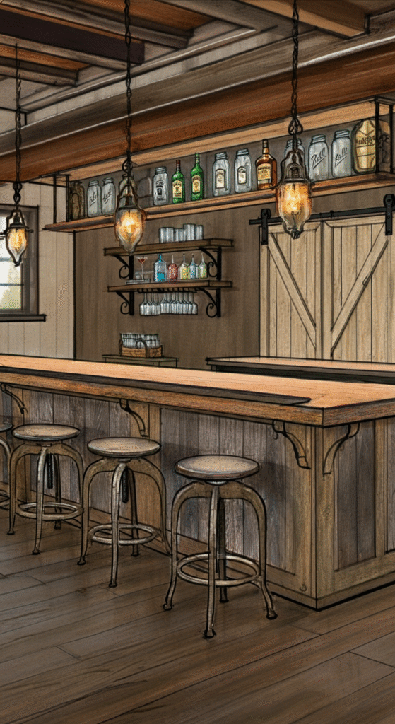 Rustic charm meets elegance in the farmhouse bar style. Ideal for those who appreciate a warm, cozy feel, the rustic farmhouse bar is all about natural materials, wooden textures, and vintage-inspired designs.