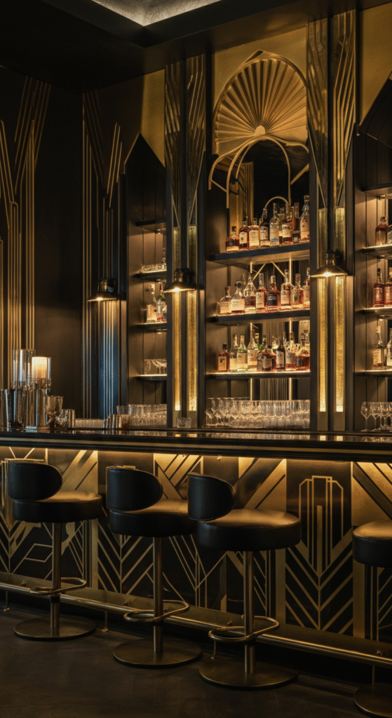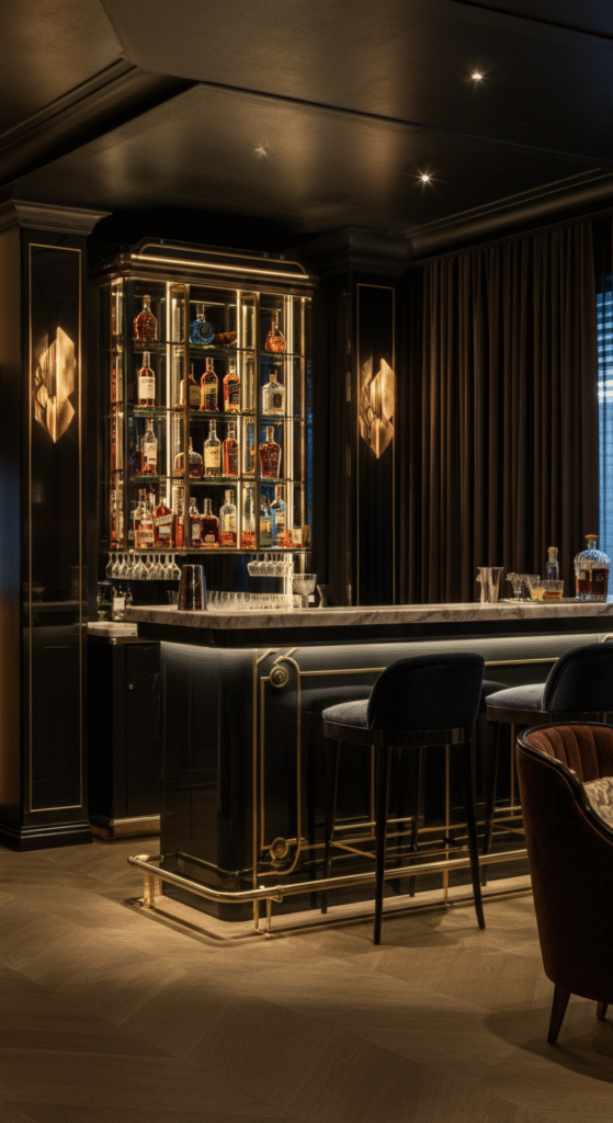 Did you know? Glamorous bars draw inspiration from the 1920s Art Deco period, a time when Hollywood celebrities and wealthy socialites gathered in extravagant spaces. This style captures the spirit of glamour and luxury, perfect for those who want to add a touch of old-school charm to their home.