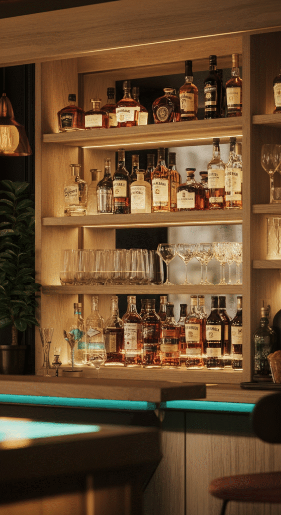 Fun Fact: Minimalist design is rooted in the principle of “less is more,” allowing your favorite spirits and glassware to take center stage while maintaining a tidy, organized space.