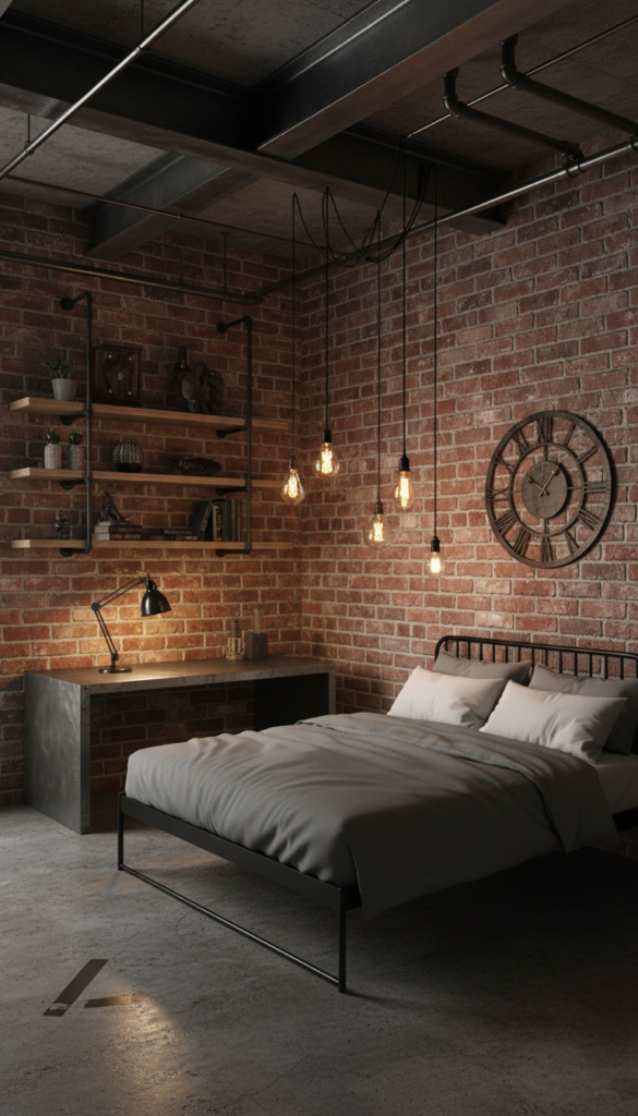 To create an industrial-style bedroom, focus on exposed brick walls, concrete surfaces, and metal furniture. Keep the design minimal, with raw and unfinished materials that give the room an authentic urban vibe.