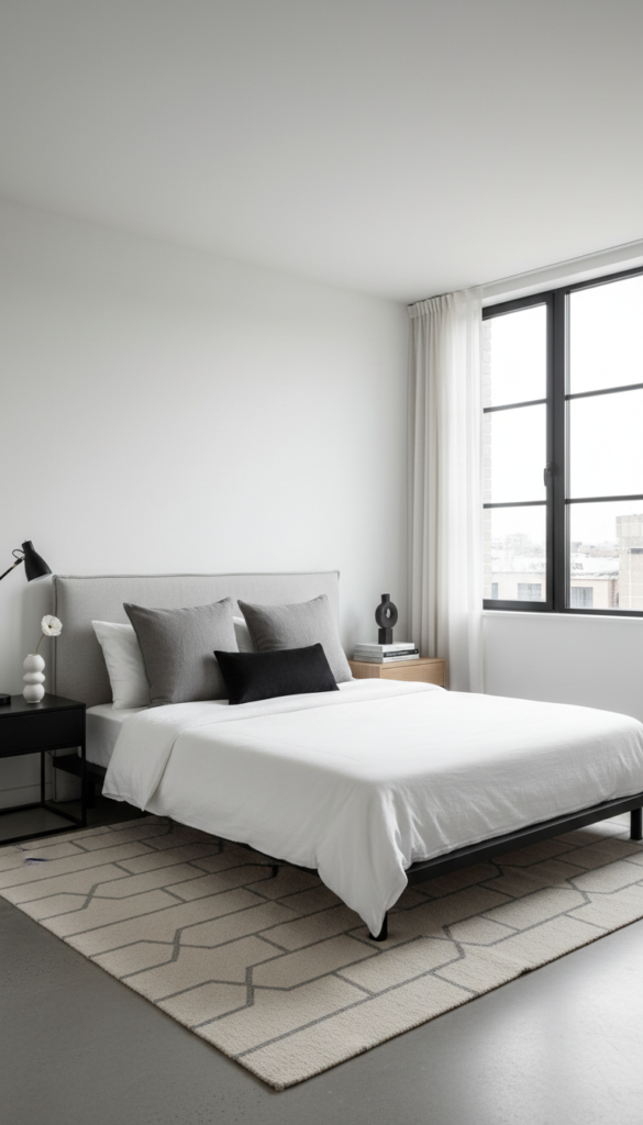 How do I achieve a minimalist urban bedroom?