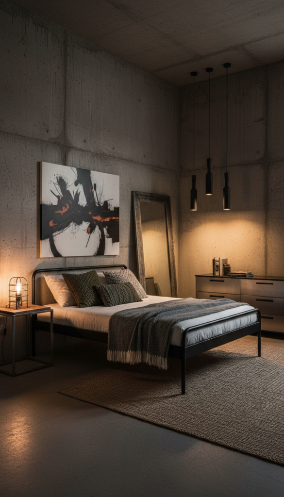 The industrial look is a favorite in urban bedrooms. Think raw materials like exposed brick, concrete walls, metal furniture, and steel beams. The idea is to keep things minimal yet full of character.