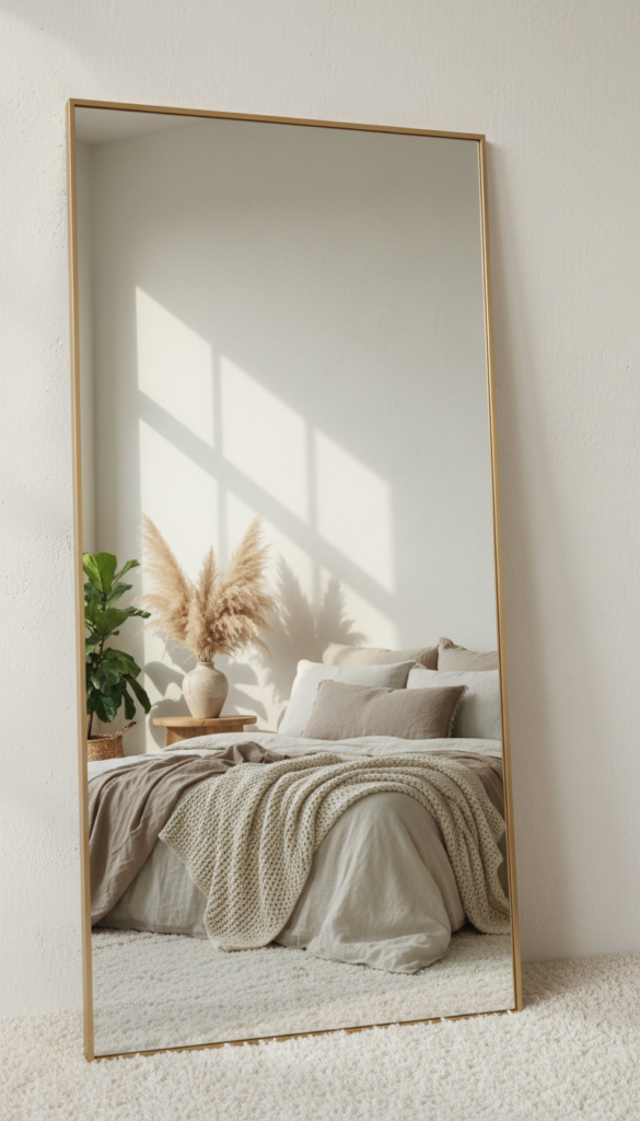 A giant floor mirror is a staple in any “cool girl” bedroom. It reflects light, makes small spaces feel massive, and serves as a piece of art in itself. The key here is size—go big or go home. An oversized mirror leaning against the wall feels casual yet undeniably luxe.