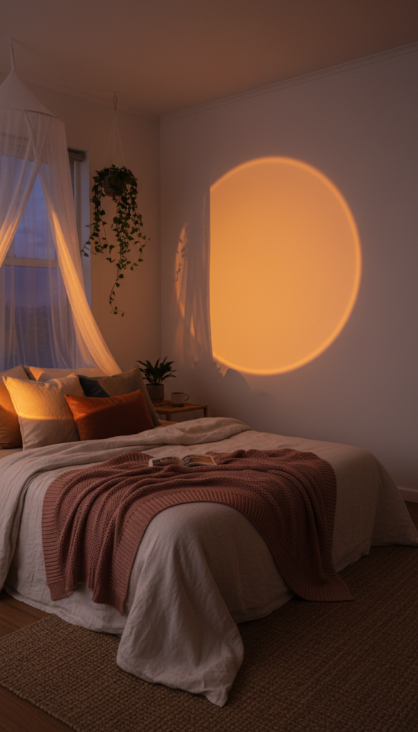 Lighting sets the mood, and the “golden hour” aesthetic is a massive trend for a reason. Sunset lamps cast a warm, ethereal glow that instantly changes the atmosphere of your room. It’s an inexpensive gadget that creates a high-concept, artistic lighting effect usually reserved for professional photo studios.