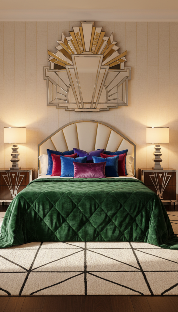 An Art Deco mirror can be the focal point of your bedroom. With its geometric shapes, metallic finishes, and bold lines, this vintage accent elevates any wall. Place it above your bed or vanity for a statement piece that adds both style and depth to your room.