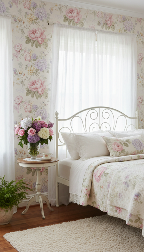 Floral wallpaper, especially in soft pastel tones, is a quintessential vintage decor choice. It can turn a plain wall into a statement piece, evoking the romantic spirit of vintage design. Whether you choose large, bold blooms or delicate patterns, floral wallpaper gives your bedroom a soft, feminine touch.
