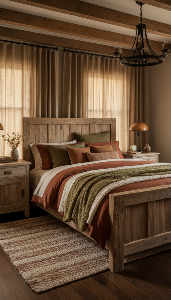 Distressed wood accents bring a rustic, vintage charm to your bedroom. Whether it’s a reclaimed wood bed frame, vintage nightstands, or wooden beams on the ceiling, this element adds warmth and texture to your space. The weathered look of the wood tells a story of its own, giving your room a cozy, lived-in feel.