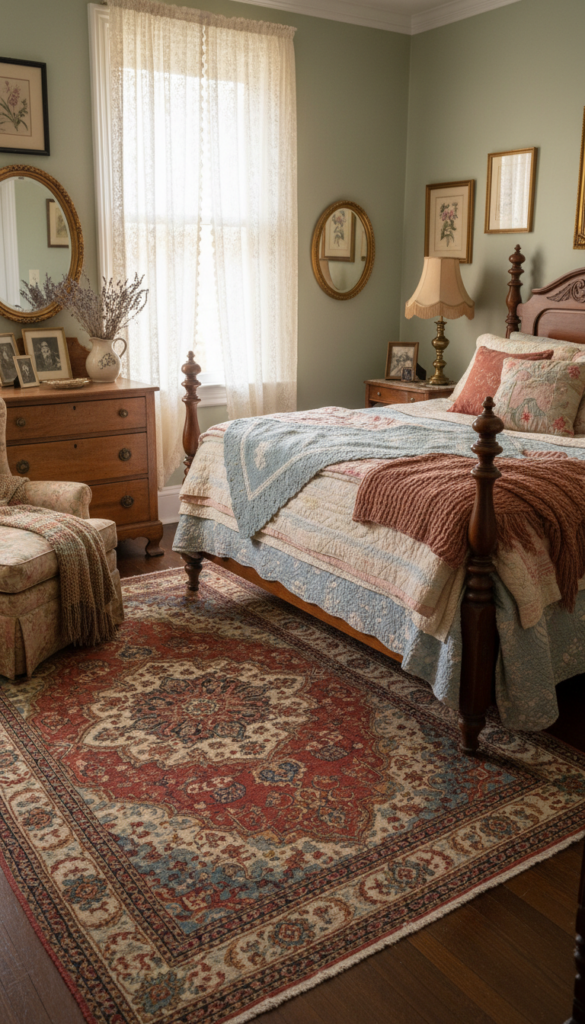 Rugs are an excellent way to add a vintage touch to your bedroom. Look for Persian or Moroccan-style rugs with intricate patterns and rich colors. These timeless textiles add warmth to your floors and create a welcoming atmosphere. Don’t forget to incorporate vintage throws or quilts to enhance the layered, cozy feel of your room.