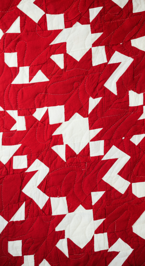 Fun Fact: The red and white color combination is associated with the classic Christmas colors of Santa Claus’s suit and the candy cane. These quilts make an eye-catching statement and are often displayed in homes during the holidays.
