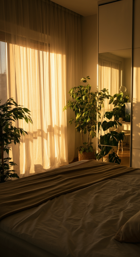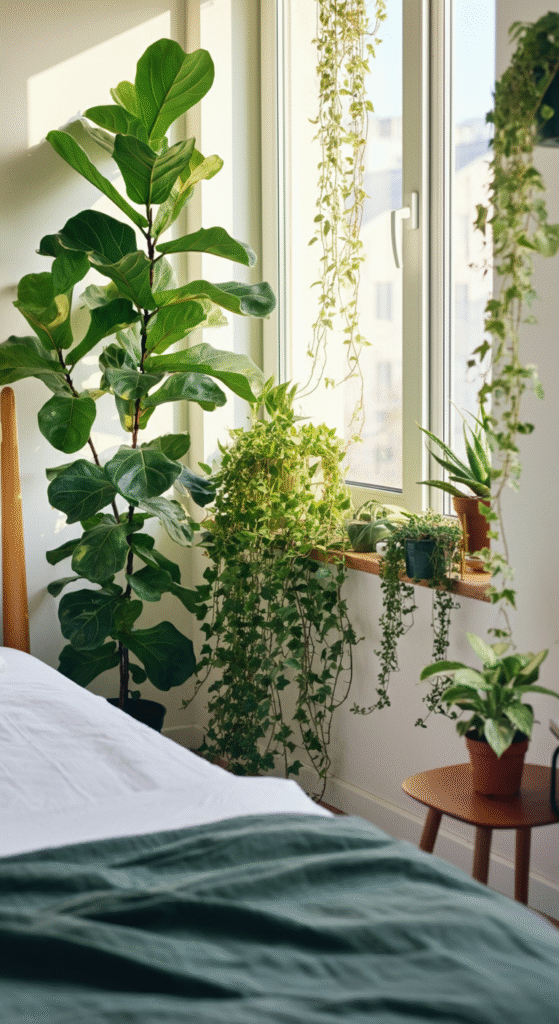Natural light is essential for both plant growth and creating a lively, uplifting atmosphere in your room. If your bedroom doesn’t have a lot of windows, consider using sheer curtains or blinds that let in more sunlight. The gentle light will help your plants thrive and will also create a warm, inviting glow in your space.