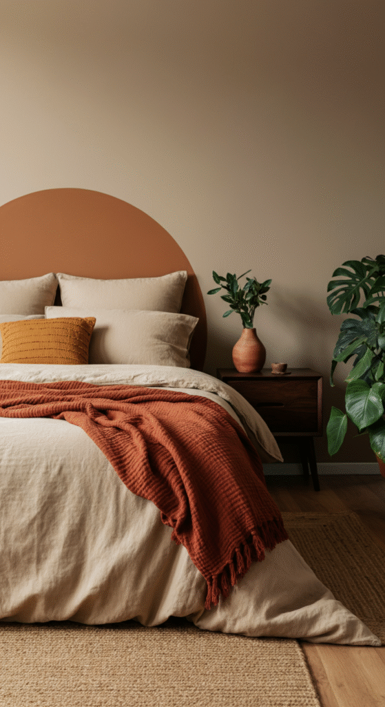 Your choice of color palette plays a huge role in creating a nature-inspired space. Earthy tones such as warm browns, forest greens, sandy beiges, and soft terracottas help bring the outdoors in, making your bedroom feel like a cozy escape in the heart of nature.