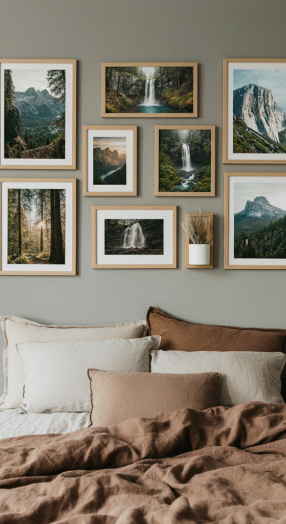 A gallery wall filled with art depicting forest landscapes, mountain vistas, or ocean scenes can make you feel like you’re surrounded by the beauty of nature, even while indoors. Not only does this personalize your space, but it also invites a deeper connection to the outdoors.