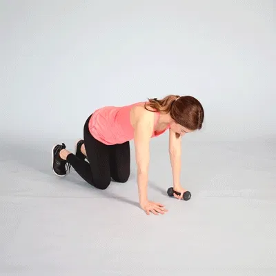 - Hold a light dumbbell in one hand and row while extending the opposite leg.