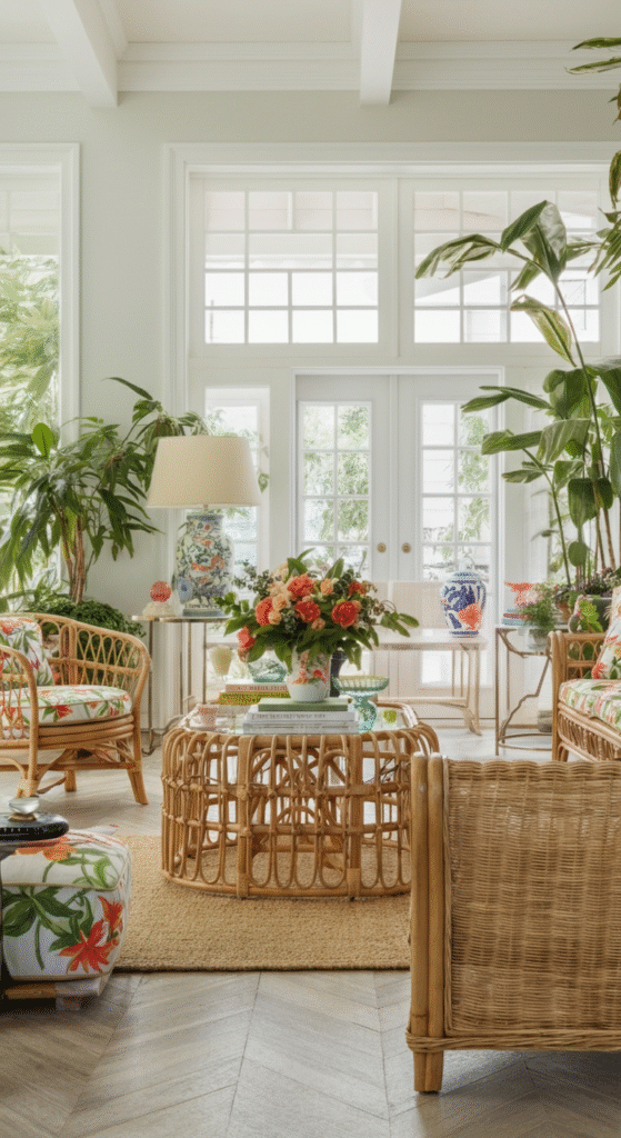 For a living room that feels like an island retreat, the tropical paradise layout brings the outdoors inside. With lush greenery, natural light, and vibrant colors, this layout feels like an exotic getaway.