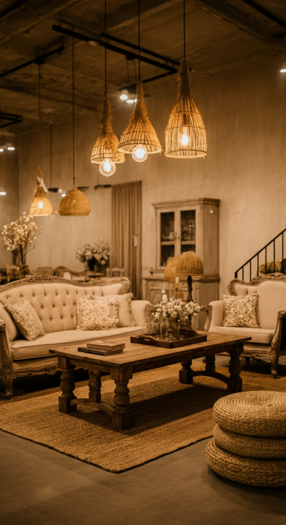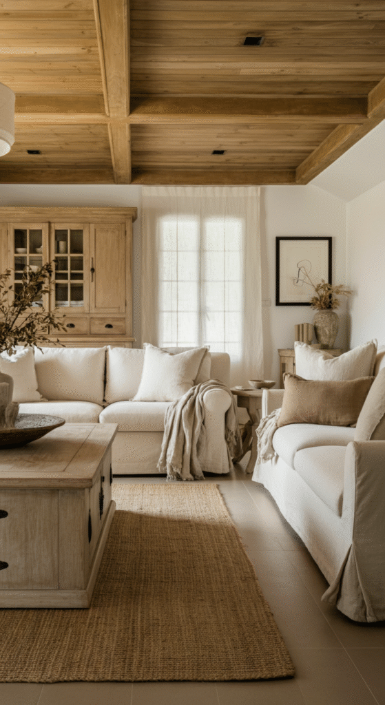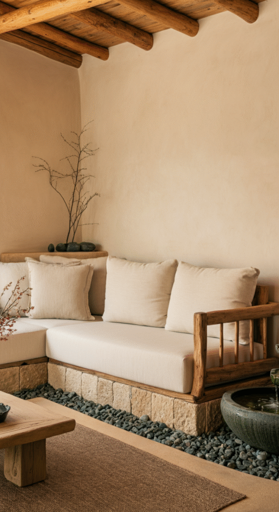 Think soft, comfy throws, wooden furniture, and rustic details that give the space an earthy, lived-in vibe.