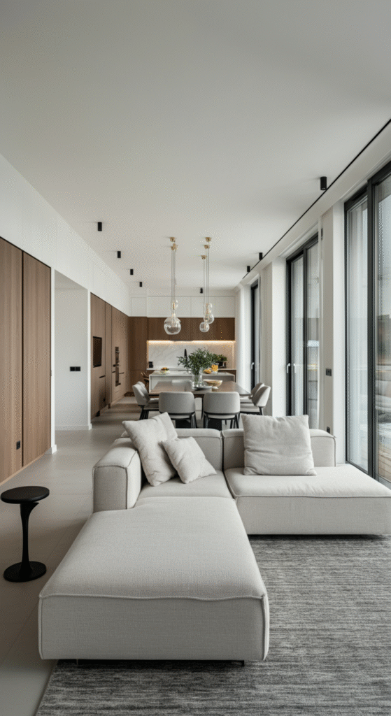 Open concept layouts are all about breaking down barriers—literally. This layout merges the living room with adjacent spaces like the kitchen or dining area, making it an ideal choice for larger homes.