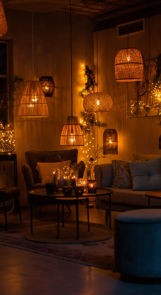 Lighting plays a critical role in creating a fall-inspired atmosphere. Opt for soft, warm lighting to create a cozy and inviting feel. Consider using table lamps with fabric shades in fall colors, or hang string lights or lanterns for a whimsical touch.