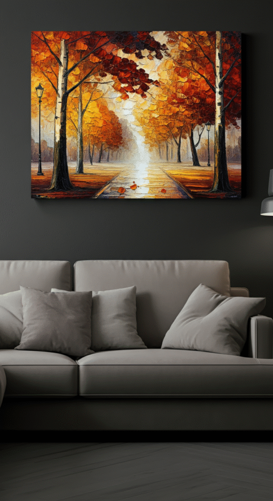 Interesting fact: According to design experts, art has the power to influence your mood. Fall-inspired art can evoke feelings of warmth and nostalgia, enhancing the overall ambiance of your living room.