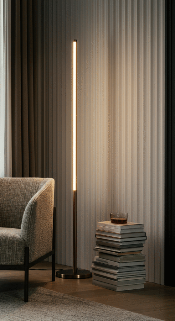 Floor lamps are a versatile and functional addition to any living room. They can be placed in corners to provide additional light without overwhelming the space. The tall, slender design of a floor lamp adds height to the room, which can be especially beneficial in smaller spaces or rooms with low ceilings.
