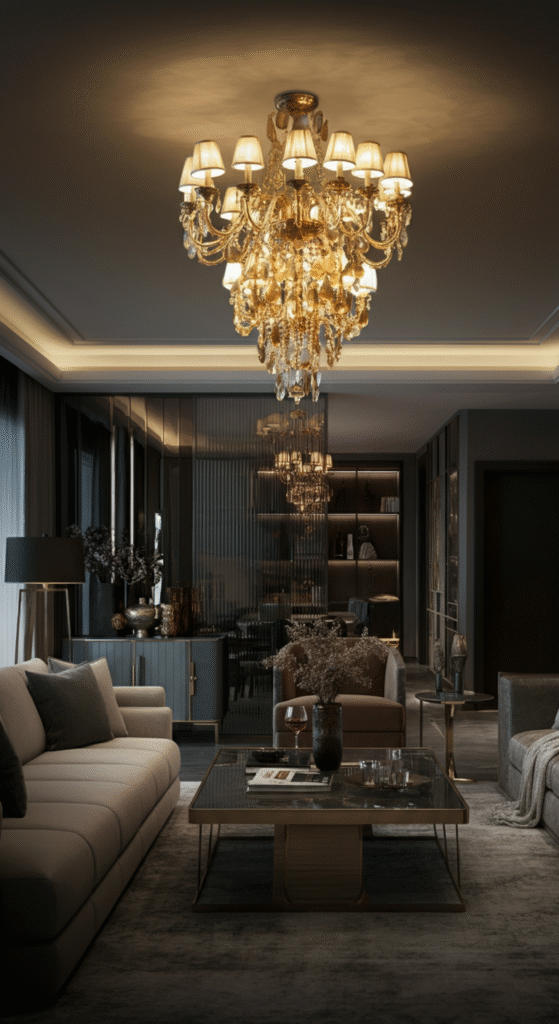 When it comes to living room lighting, ceiling fixtures are often the focal point. A bold, statement chandelier or pendant light can draw the eye upward and become the centerpiece of the room. These lights not only serve as functional illumination but also as a design element that ties the room together.
