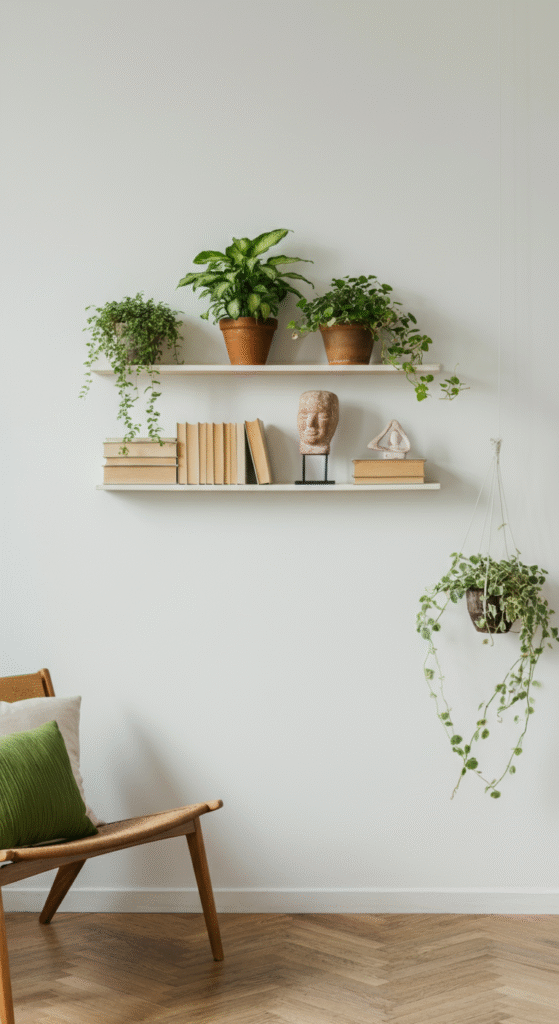 Floating shelves are a quintessential element of Mid-Century Modern design. These shelves are typically mounted directly to the wall with no visible brackets, giving them a clean, minimalist look.