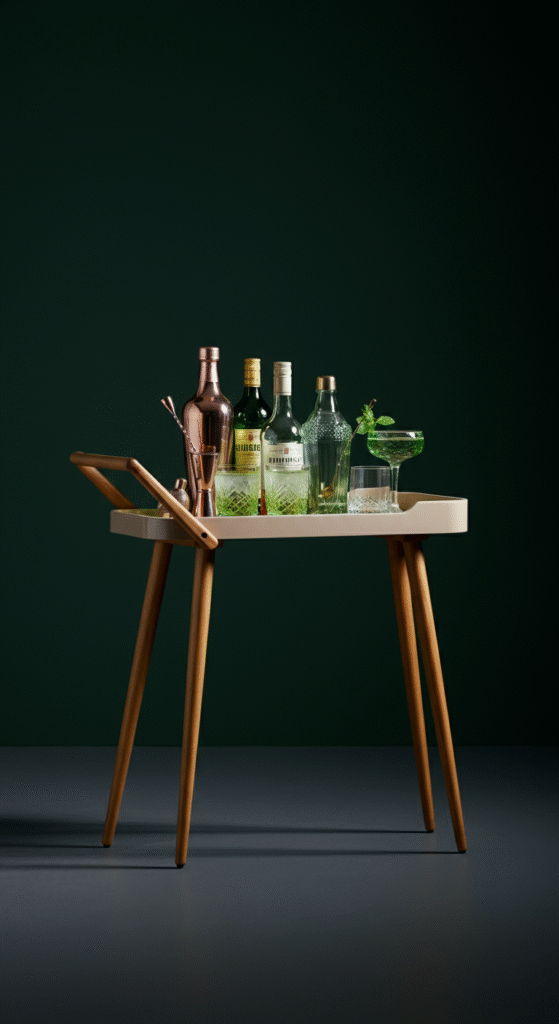 For a touch of retro glam, consider adding a Mid-Century Modern bar cart to your living room. These carts, often made from wood or metal, are designed for both utility and style.