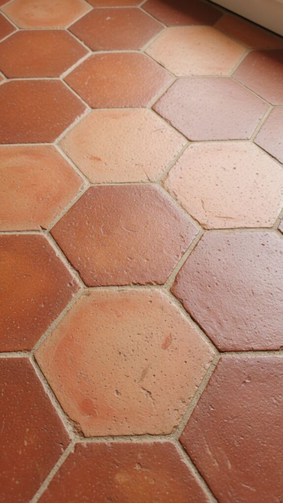 For a natural stone or terracotta look, choose a grout color that blends with the tile (like beige or sand) or a neutral grey. Avoid stark white or black grout, as it can look too modern or industrial for this softer, rustic style.