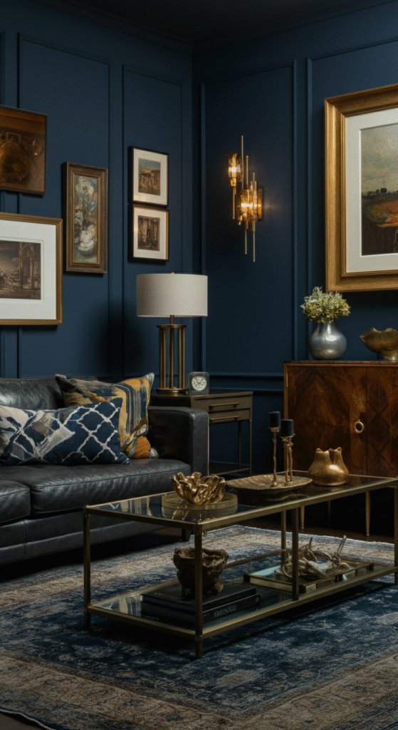 Navy blue is perfect for both large and small spaces. It makes rooms feel more spacious while adding a touch of drama. Paired with gold or brass accents, navy blue can make your living room feel like a five-star hotel lobby.