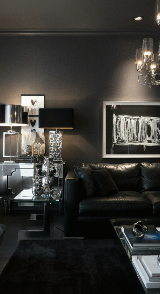 Charcoal gray creates a striking contrast when paired with light-colored furniture, such as white or cream sofas. It also serves as a great backdrop for colorful art or décor pieces, allowing them to pop and grab attention.