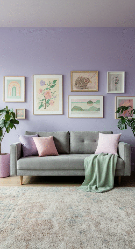 Soft lilac is both gentle and uplifting, making it ideal for living rooms where you want a sense of serenity, but with a playful edge. It pairs well with soft neutrals, like beige and white, and can also be combined with bolder hues, like gold or navy, for a more dramatic effect.