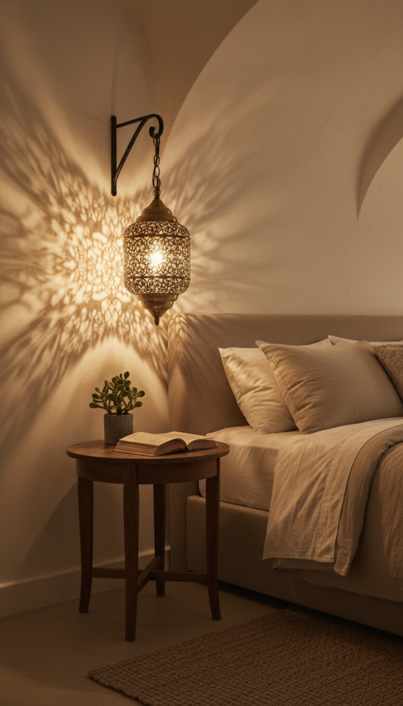 Brass lamps and lanterns add a rustic yet elegant touch to any Indian-themed bedroom. These lighting pieces are often adorned with intricate designs and can create a soft, romantic glow.